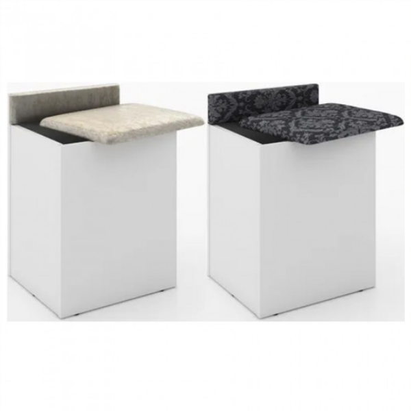 Puff Baúl – 2052 Con respaldo pequeño Ideal para dormitorio o auxiliar del estar Asiento tapizado Baúl para guardad diversos artículos Confeccionado en placa de MDP de 15 mm Medidas: Alto 55 cm Ancho 38 cm Prof. 33 cm