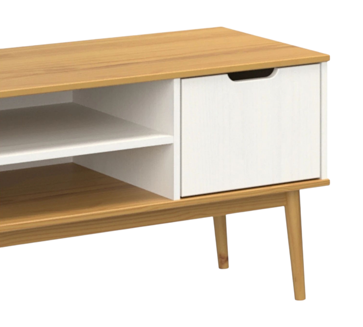 Rack 1 Pta. 2 Caj. Linea Nordica Blanco/Roble 3407RB Código: 0000203-3067 Color: Blanco / Roble Medidas Altura: 53 cm Ancho:150 cm Profundidad: 40 cm Rieles metálicos.