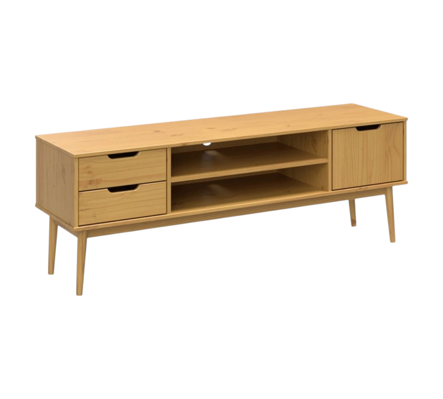 Rack 1 Pta. 2 Caj. Linea Nordica Roble 3407R Código: 0000203-3068 Color: Roble Medidas Altura: 53 cm Ancho:150 cm Profundidad: 40 cm Rieles metálicos.
