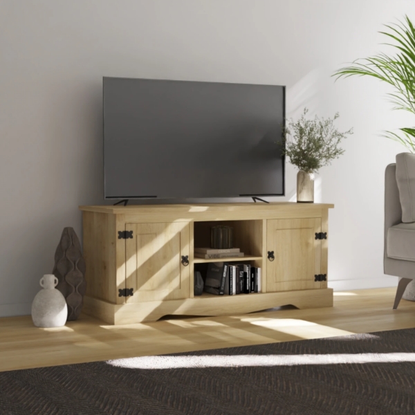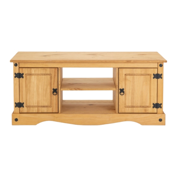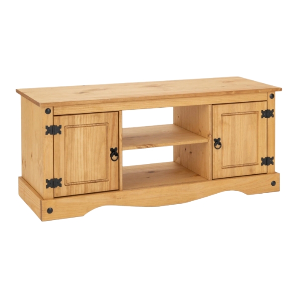 Rack 2 Puertas Línea Mexicana Código: MEX004 Material: madera maciza de pino – Color: Natural – Cantidad de puertas: 2 – Cantidad de estantes: 1 – Medidas: Altura 52 cm Profundidad 41 cm Largo 120 cñm – Peso: 19 Kg.