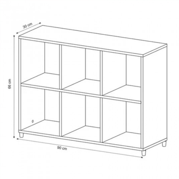 Repisa Estantería – 1719 Biblioteca – Estantería cubos Estilo minimalista, funcional y moderno 6 espacios o cubos Confeccionado en placa de MDP de 15 mm Patas en PVC Medidas: Alto 66 cm Ancho 90 cm Prof. 30 cm