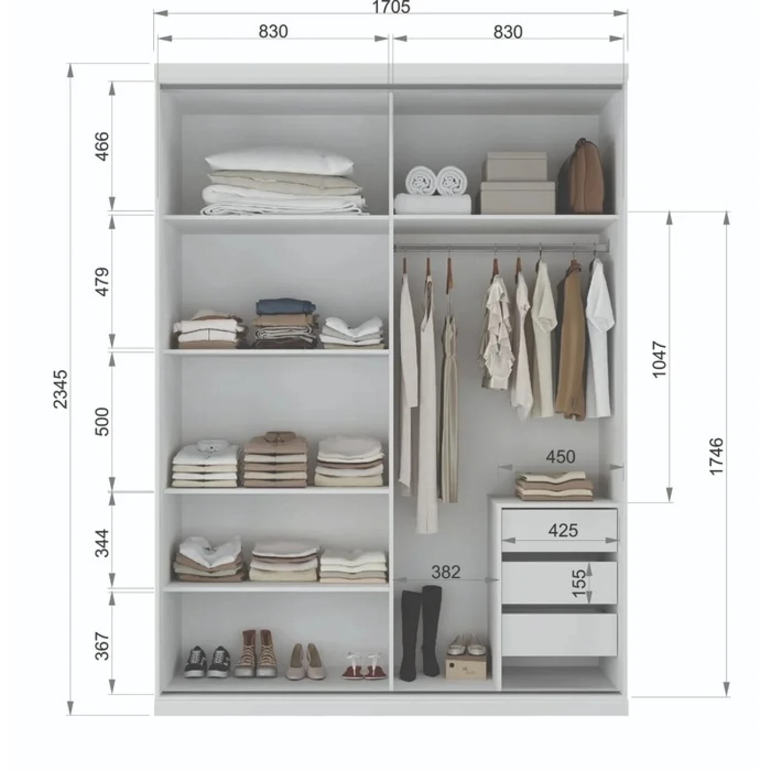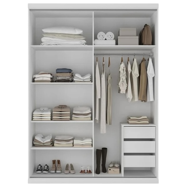 Ropero 2 Puertas Corredizas South Plus Blanco 94200 Código: 94200- 4134 – Dimensiones totales – Altura: 234.5 CM Ancho: 174.5 CM Profundidad: 62.5 CM – Materiales – 100% MDF