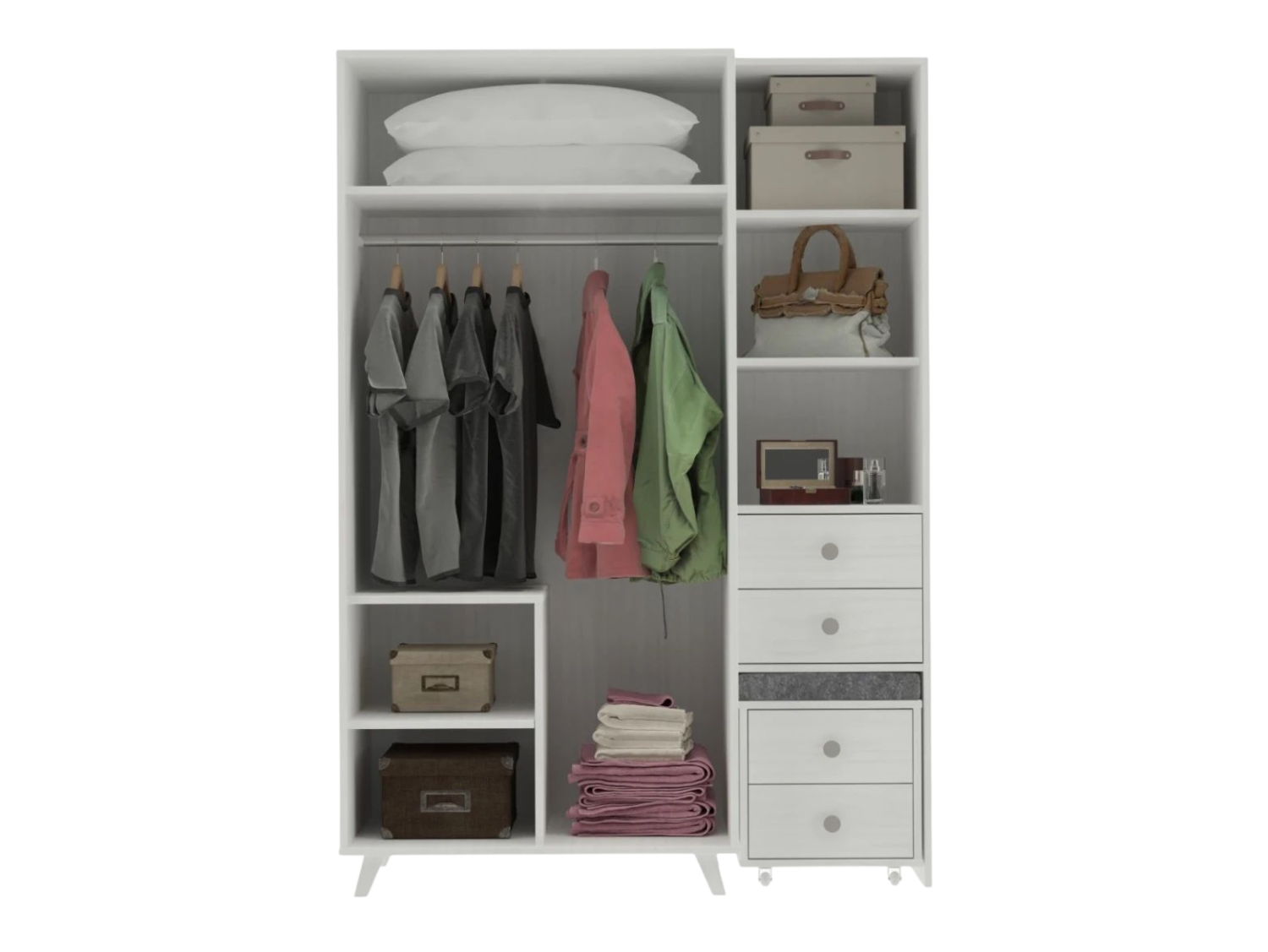 Ropero 3P + 4C Hashtag Código: 2018 ESPECIFICACIONES EAN. madera maciza de pino Acabado blanco lavado. DIMENSIONES Altura: 193cm Ancho: 136cm Profundidad: 60cm