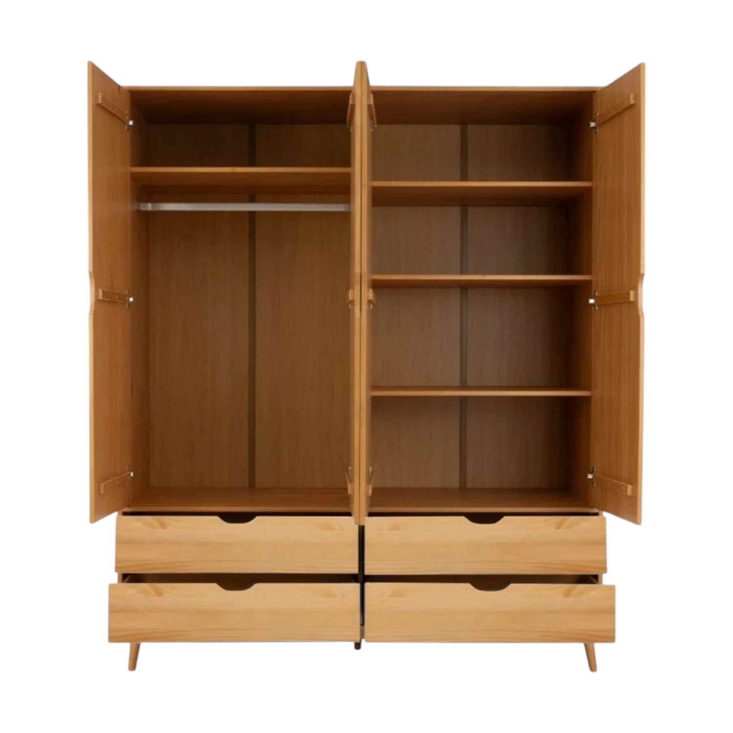 Ropero 4 Ptas. 4 Caj. Linea Nordica Roble 3404R Código: 3404R 3066 Colores: Roble Medidas Alto: 190 cm Ancho:158.5 cm Profundidad: 51 cm