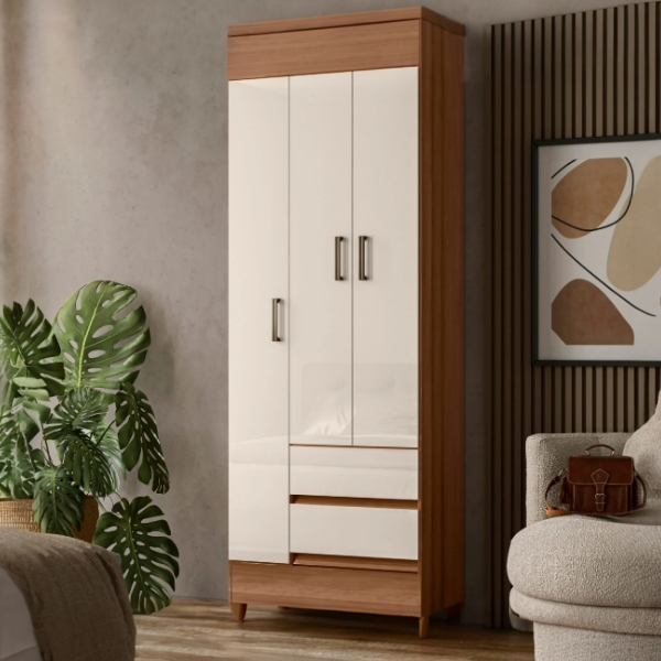 Ropero Fit 3.2 Jequitiba Off White Ropero 3 puertas 2 cajones – Terminación Jequitibá Claro – Linea FIT Medidas: Altura: 191 cm Ancho: 69.3 cm Profundidad: 42.2 cm