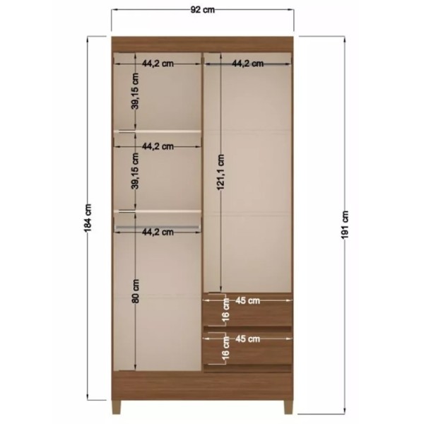 Ropero Fit 4.2 Jaquetiba Código + Color: 162960 Jaquetiba Medidas Largo: 92 cm Alto: 191 cm Profundidad: 42 cm