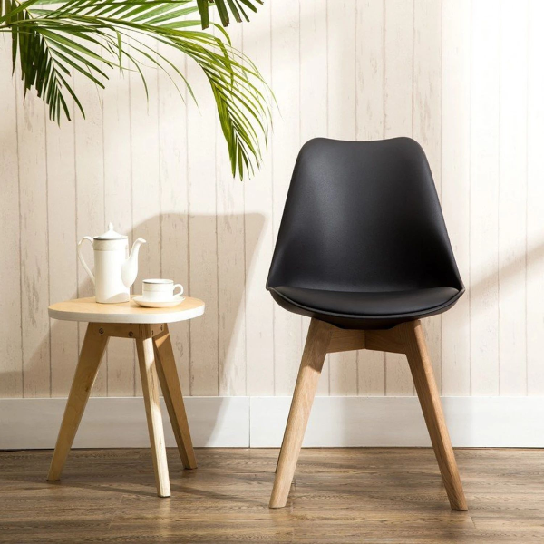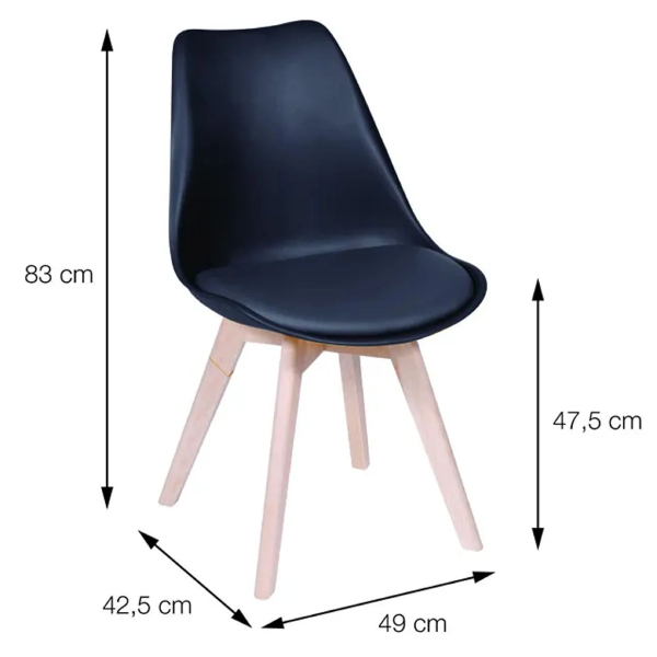 Silla Eames Tapizada Negro Color: Negro Medidas: Altura: 0.83 cm Longitud: 0.43 cm Ancho: 0.49 cm Material: Asiento de polipropileno con cojín fijo de espuma inyectada recubierta de PU con base de madera.