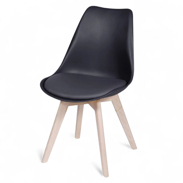 Material: Asiento de polipropileno con cojín fijo de espuma inyectada recubierta de PU con base de madera.