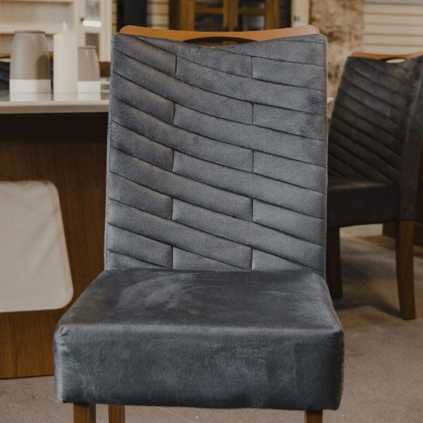 Silla Tapizada Julia Código: 0000083-3533 Color: Gris Medidas: Largo: 43cm Prof.: 41cm Alto: 95 cm Fabricado en MDF y MDP