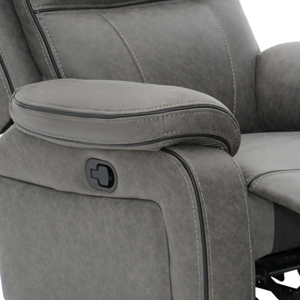 Sillón Recliner Apollo 1 Cuerpo – Gris Codigo: 0000585-5574 Medidas: Altura: 105 cm Ancho: 99 cm Prof: 80cm Del asiento al piso 46 cm Del asiento al respaldo : 70 cm Reclinado: 1,67 cm