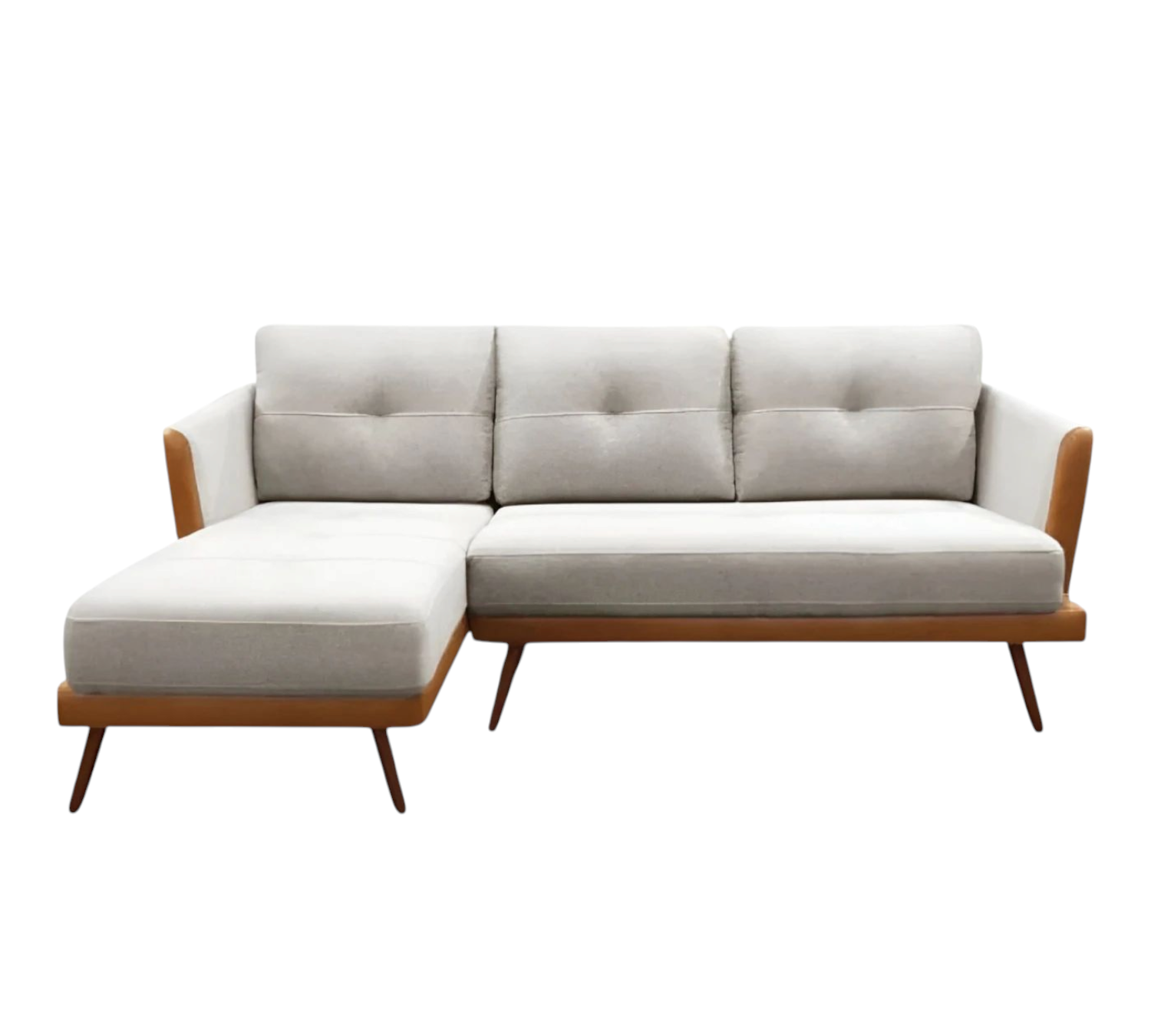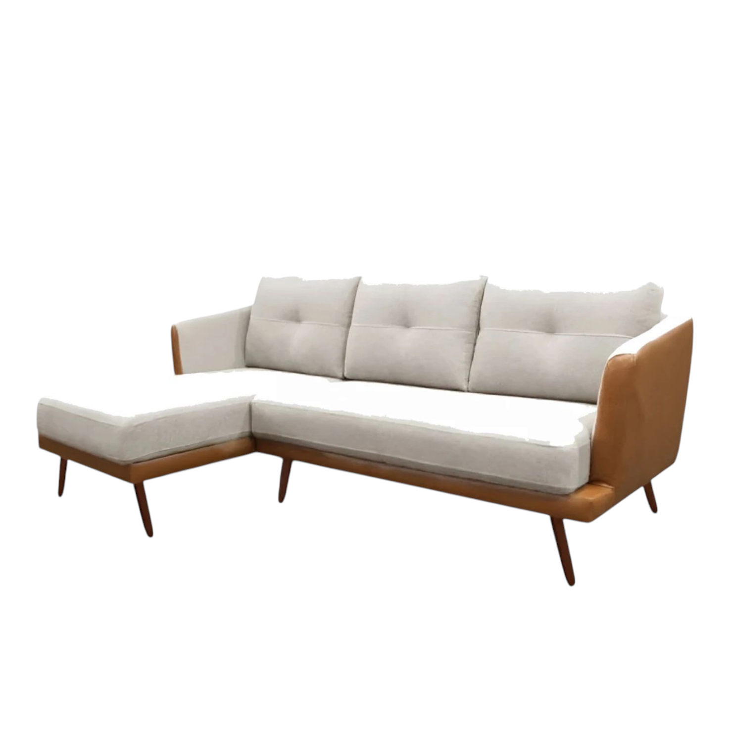 Sofá Con Chaise Derecho Código: 0000313-1869 Medidas: Alto: 90 cm Ancho: 219 cm Prof: 90/145 cm MADERA DE EUCALIPTO DE REPOBLACIÓN FORESTAL Tiras de goma Espuma