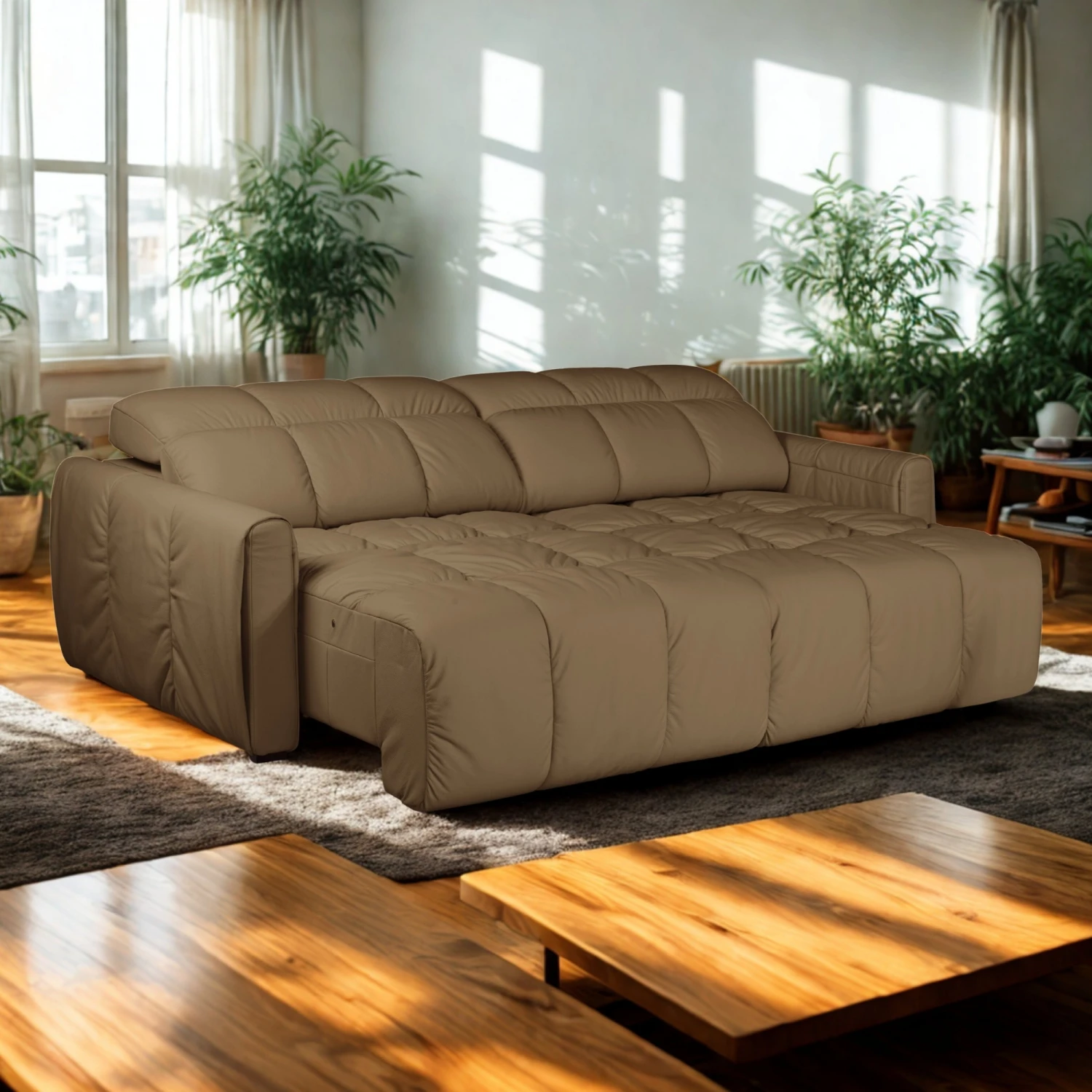 Sofá De Cuero 3 Cuerpos Masom Codigo: 0000352-4451 Color: Marrón Claro -Medidas- Alto: 106 CM Ancho: 210 CM Profundidad: 108 CM – Materiales – 100% CUERO