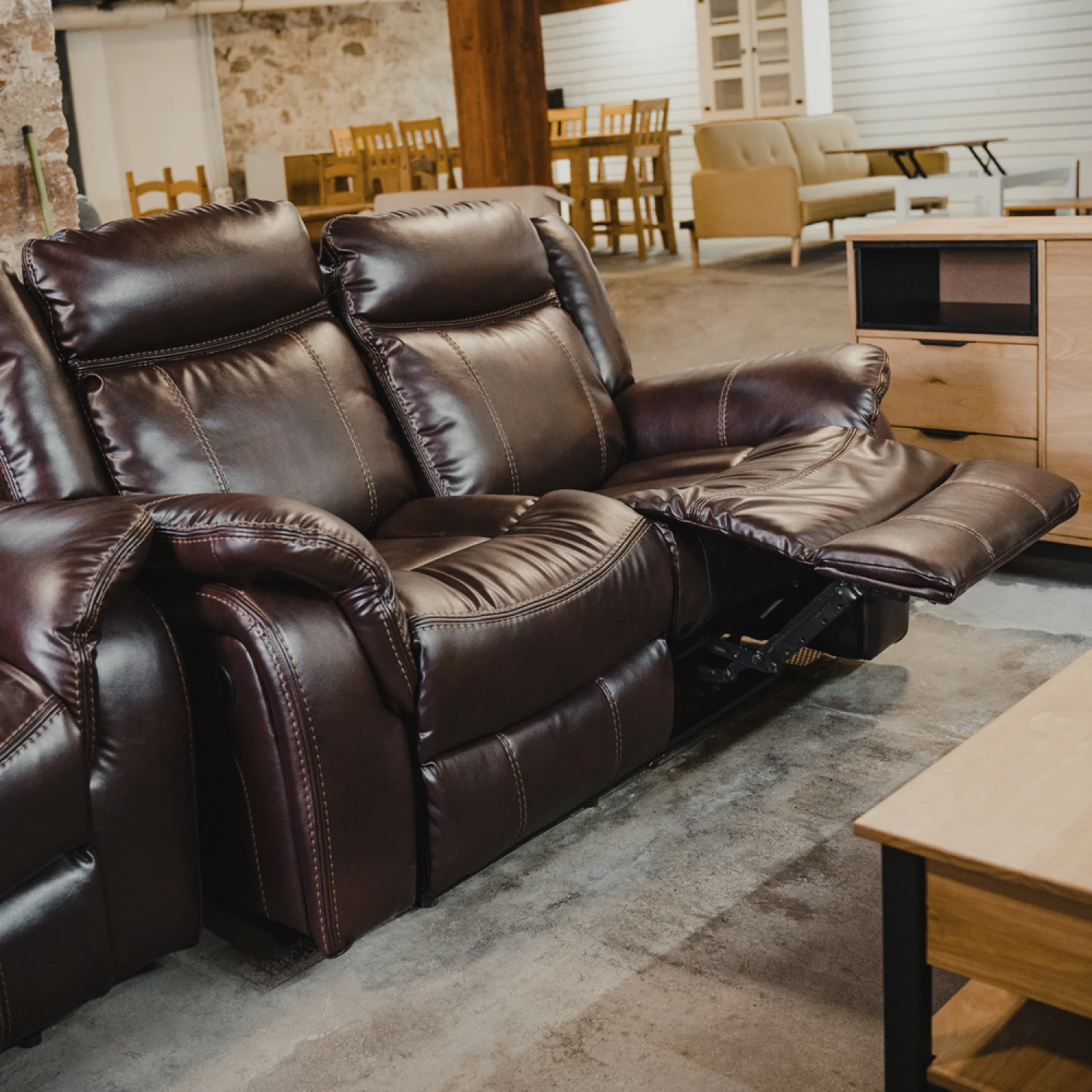 Sofá Recliner 2 Cuerpos Royal Código: 1295 Colores: Crema / Marrón 100% Bonded leather · Línea importada · Medidas: – Alto: 100 cm / Largo: 155 cm / Ancho: 95 cm