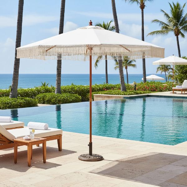 Sombrilla Con Flecos 2.7m Código: 4911 – GP2245 – Dimensiones totales – Altura: 240 Cm Ancho: 200 Cm Profundidad: 125 Cm – Materiales – Acero + Poliester Peso: 5,6kg