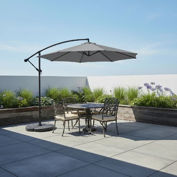 Sombrilla De Jardin 3m Código: 4920 – GP2121 Color: Gris – Dimensiones totales – Altura: 230 Cm Ancho: 300 Cm Profundidad: 300 Cm – Materiales – Acero + Poliester Peso: 13kg