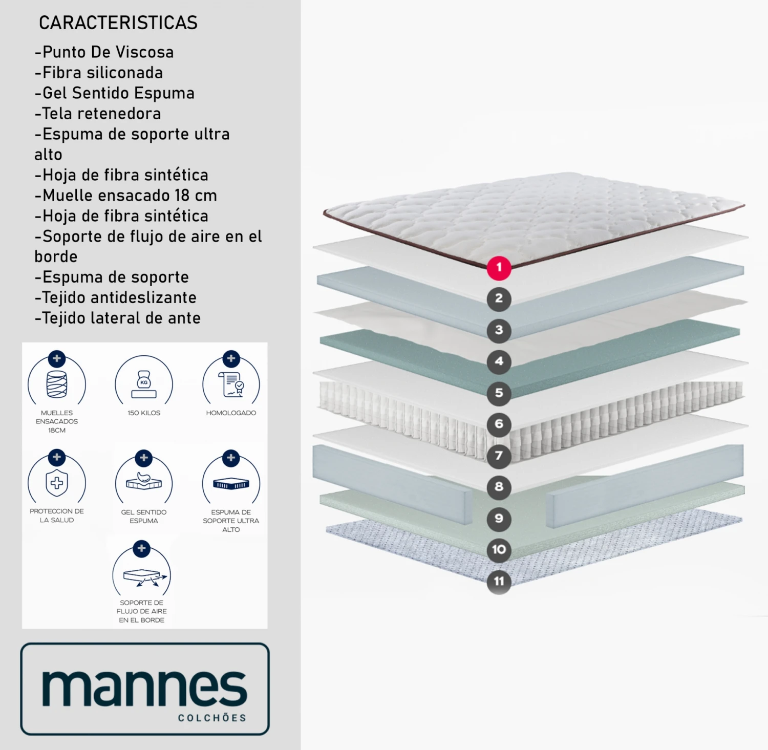 Sommier Supremo Confort Queen Código: 2439 2451 Dimensiones totales – Altura: 30 cm Ancho: 158 cm Profundidad: 198 cm Soporta: 150 kg Bases: 079x198x25 Material: Resortes Pocket y espumas