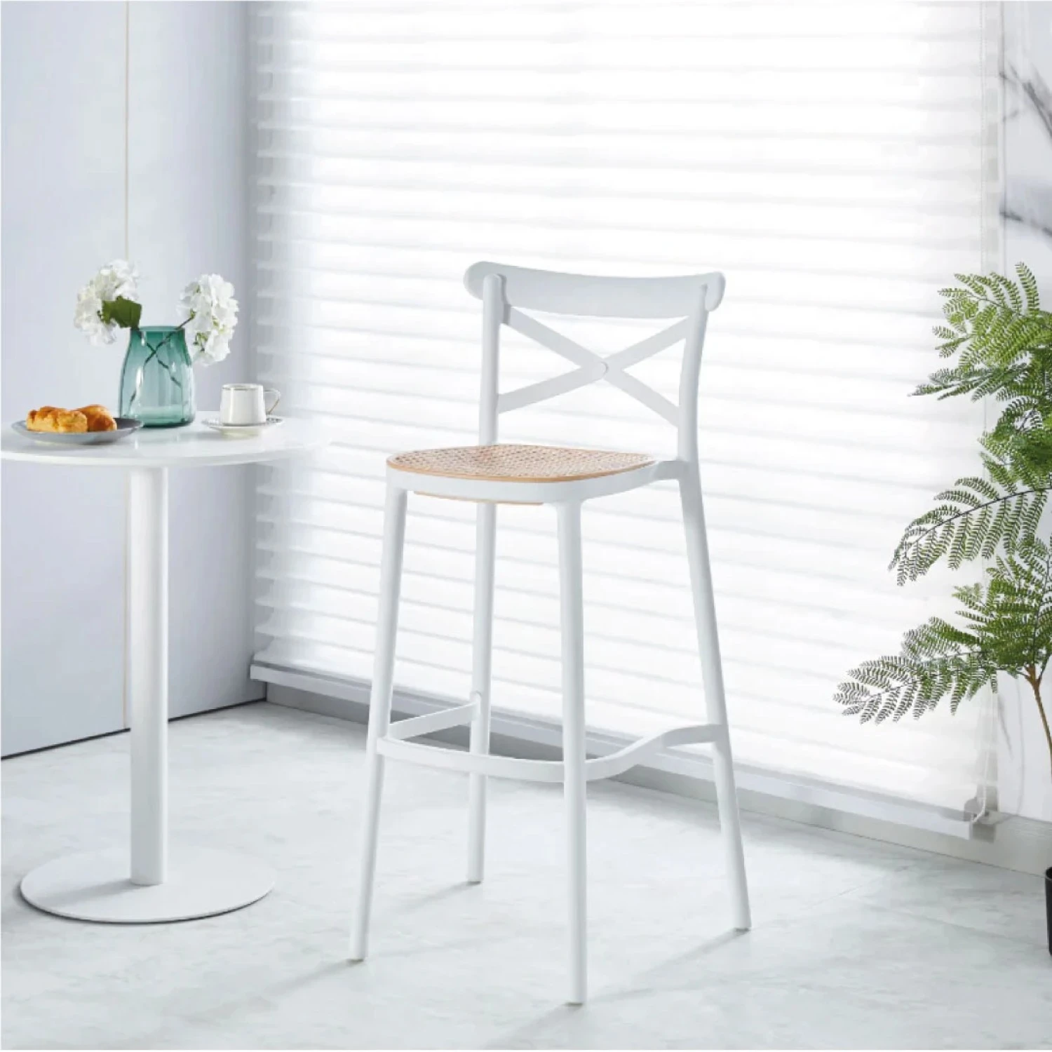 Taburete Plats Simil Rattan Blanco