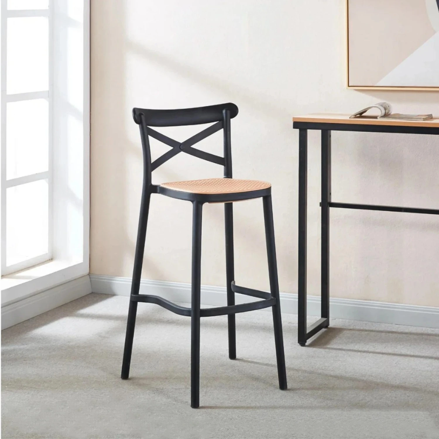 Taburete Plats Simil Rattan Negro