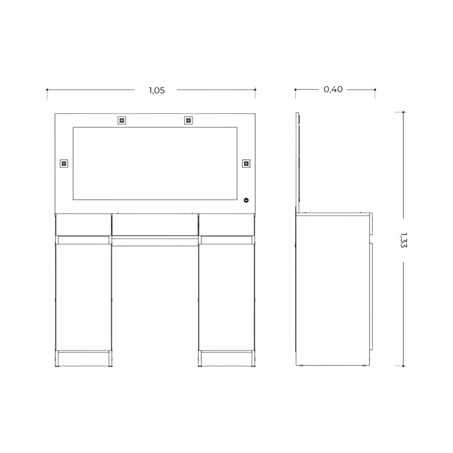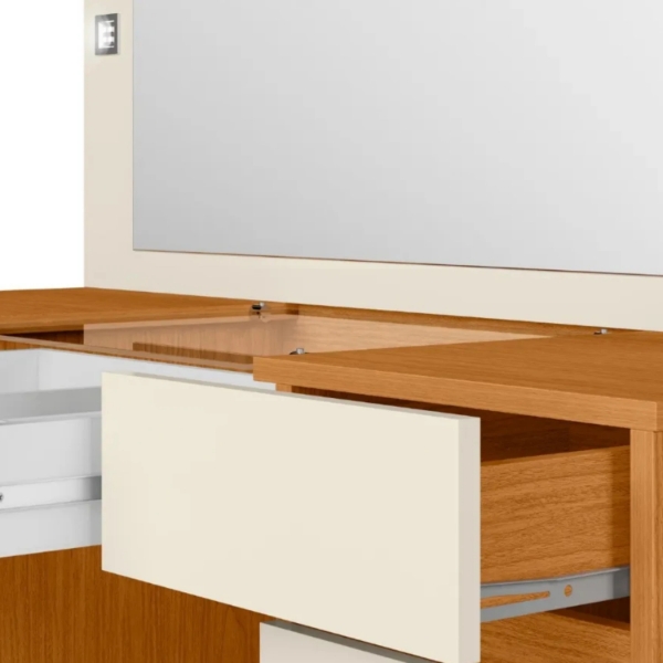 Tocador Espejo Grande Led Studio Código: 0000344-21501291 Color: Marrón – Medidas: Altura: 133 cm Largo: 105 cm Profundidad: 40 cm Composición: MDP Tipo de correderas: Metálicas Terminación: Pintura UV Espejo Led