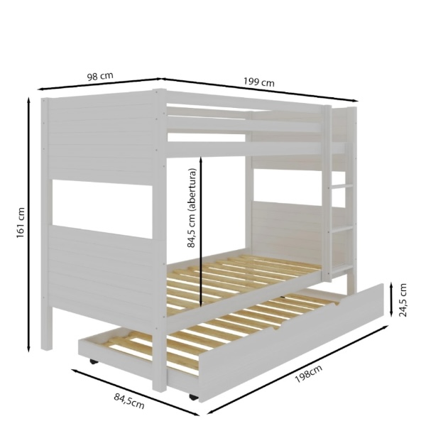 Cucheta en Madera con cama auxiliar. Soporta hasta 110Kg cama superior e inferior / 90Kg cama auxiliar.