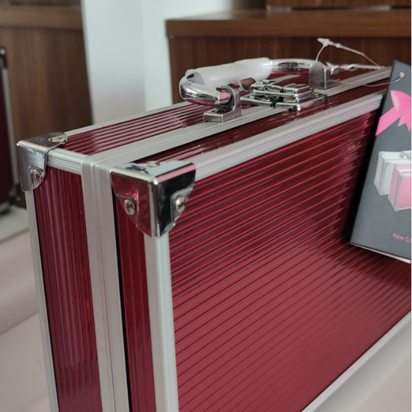 Valija Maquillaje Missyoung Medi Color: Rosa Medidas Externas: 26.5x16x8.5 cm Contiene: Sombras, rubores, brochas, labiales, esmaltes y espejo. Cierre: pestillo metálico. Organización compacta y resistente.