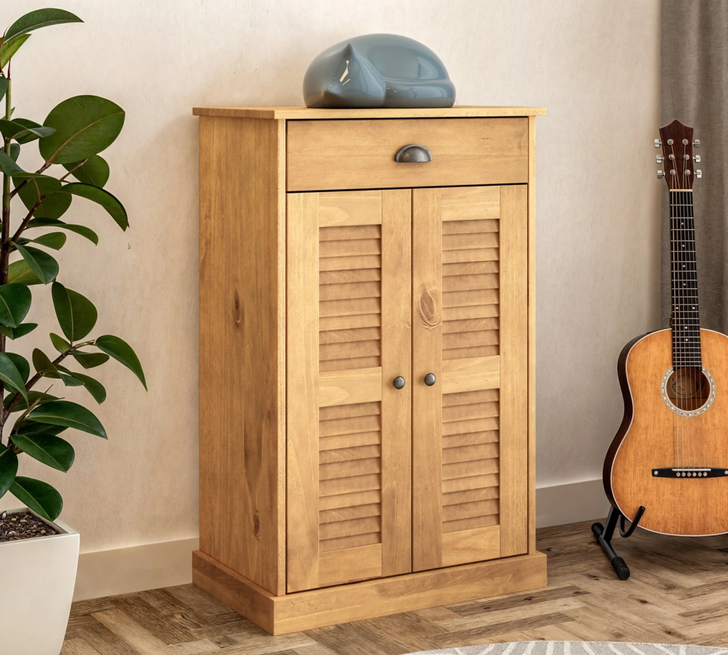 Zapatera 2P+1C Linea Valenciana Miel VEN005M Código: 3025 Dimensiones totales – Altura: 96 cm Ancho: 60 cm Profundidad: 35 cm Materiales – Madera Maciza