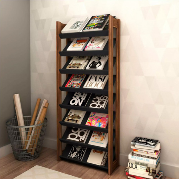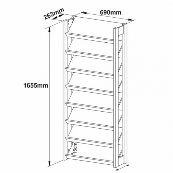 Zapatera Repisa Alta – 1006 Negro Nogal Diseño minimalista moderno 8 estantes de apoyo en MDP de 15 mm con tope Estructura lateral reforzada en placa de MDP de 25 mm Medidas: Alto 166 cm Ancho 69 cm Prof. 26 cm